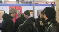 fünf Menschen am Bahnsteig