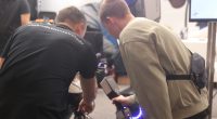 zwei Menschen testen einen Laser